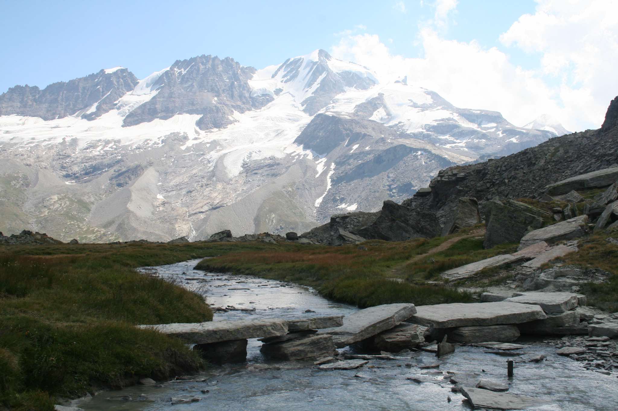 We leave the friendly Benevolo hut behind and climb via the Comba di Goletta to the Col Bassac Dere. This cwm was recently occupied by glacier and is akin to a lunar landscape, surrounded by the remains of the Goletta glacier and rocky ridge lines. At the pass, we have the option to climb the Becca della Traversierre before commencing our interesting descend, edging the impressive Gliairetta glacier, to the Bezzi hut.